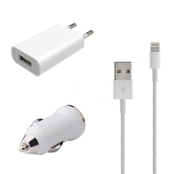 De 3-in-1 opladerset voor de iPhone en iPod bevat een thuislader, autolader en oplaadkabel. Met deze set kunt u uw iPhone bijna overal opladen: thuis, op het werk, in de auto en iedere andere plek met een stopcontact of 12-volts sigarettenaansteker. De waarde van deze set is € 23,85.